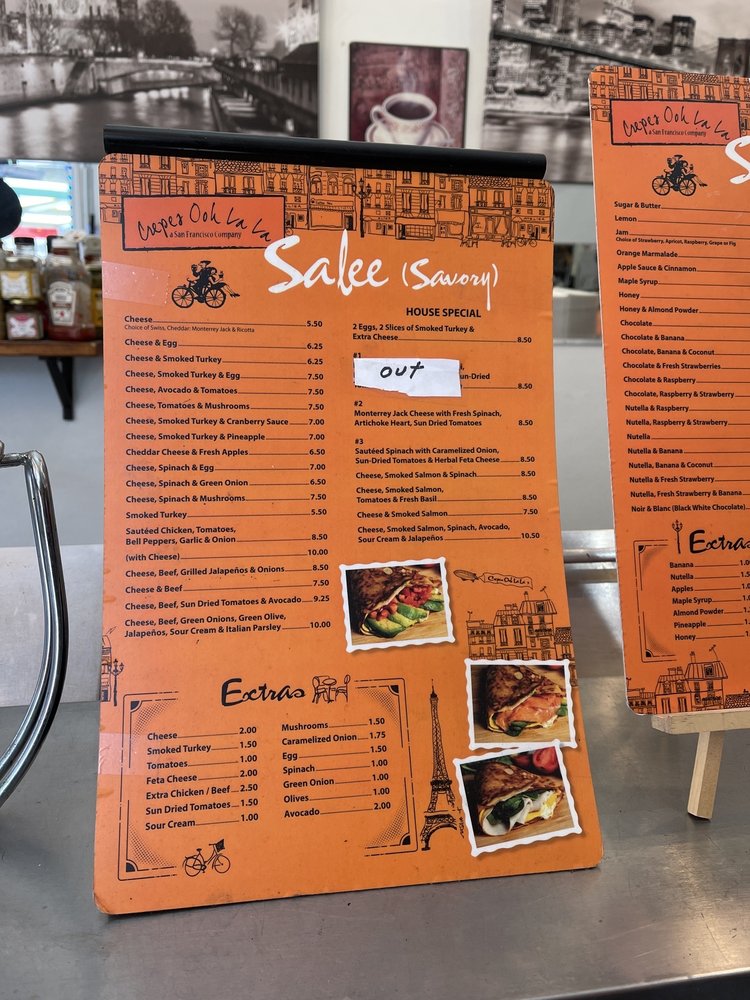 “ Excellent crepes prepared and served to you by the very friendly French-speaking owner, who has French music playing in the background and pictures of Parisian landmarks to re-create a bit of France in North Beach. ”